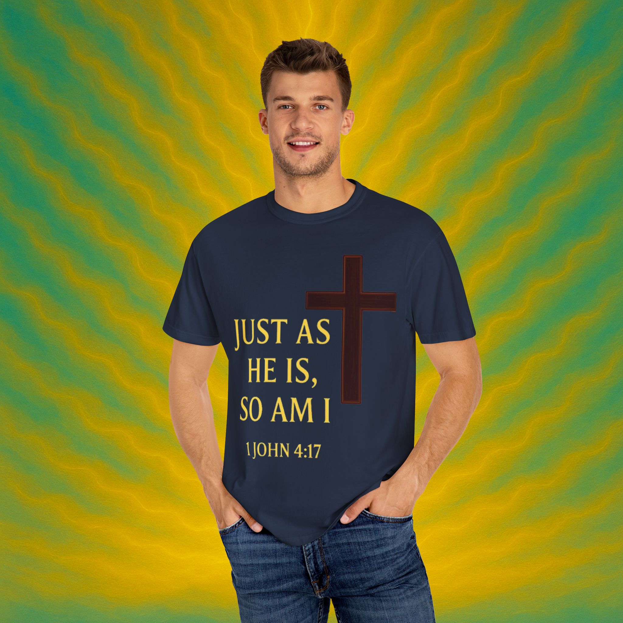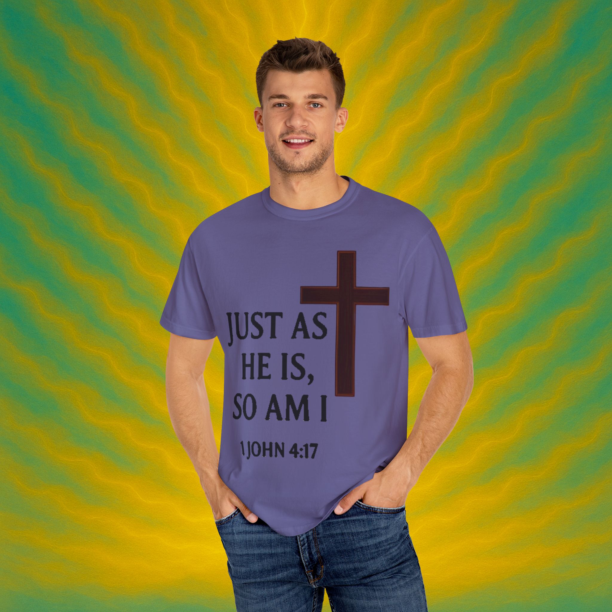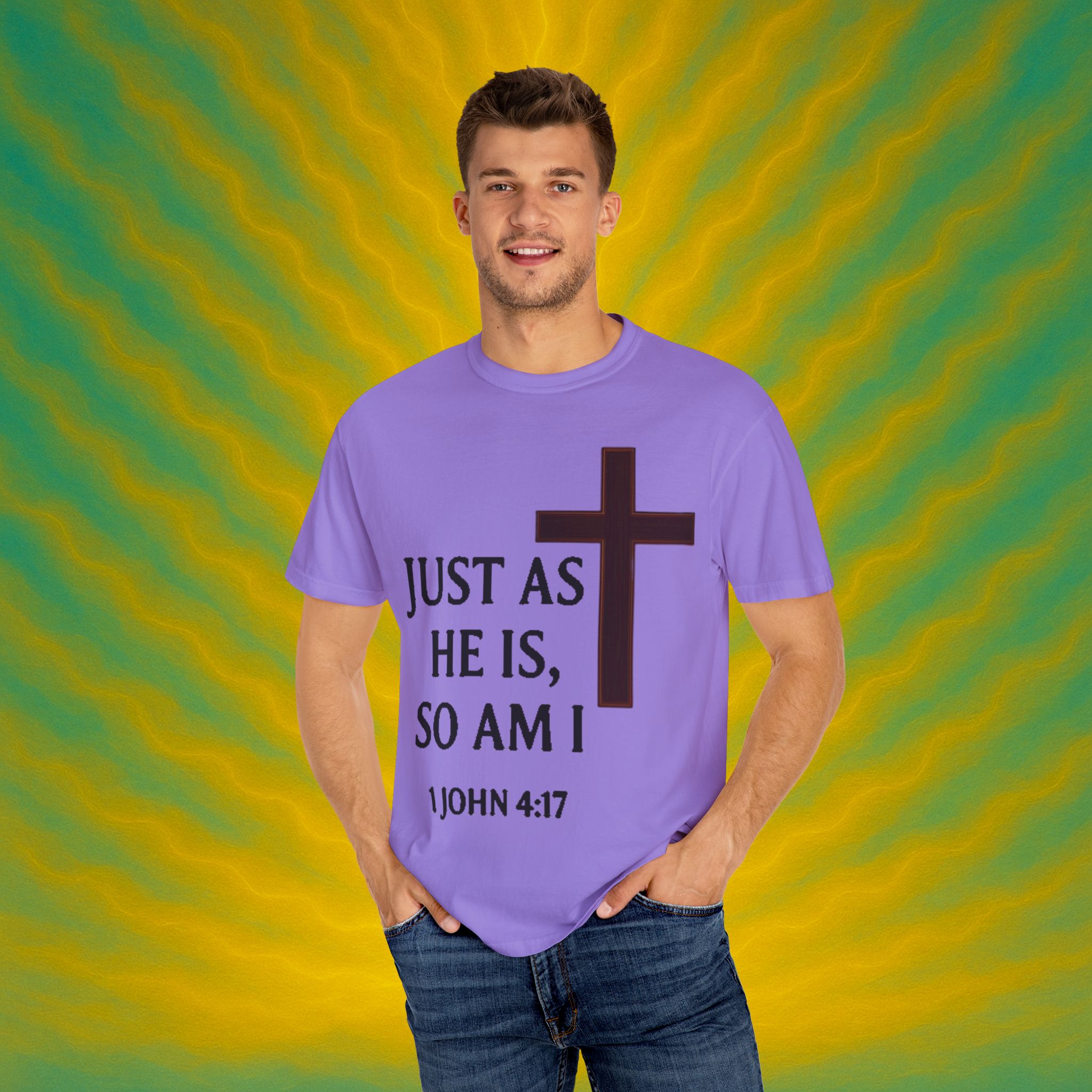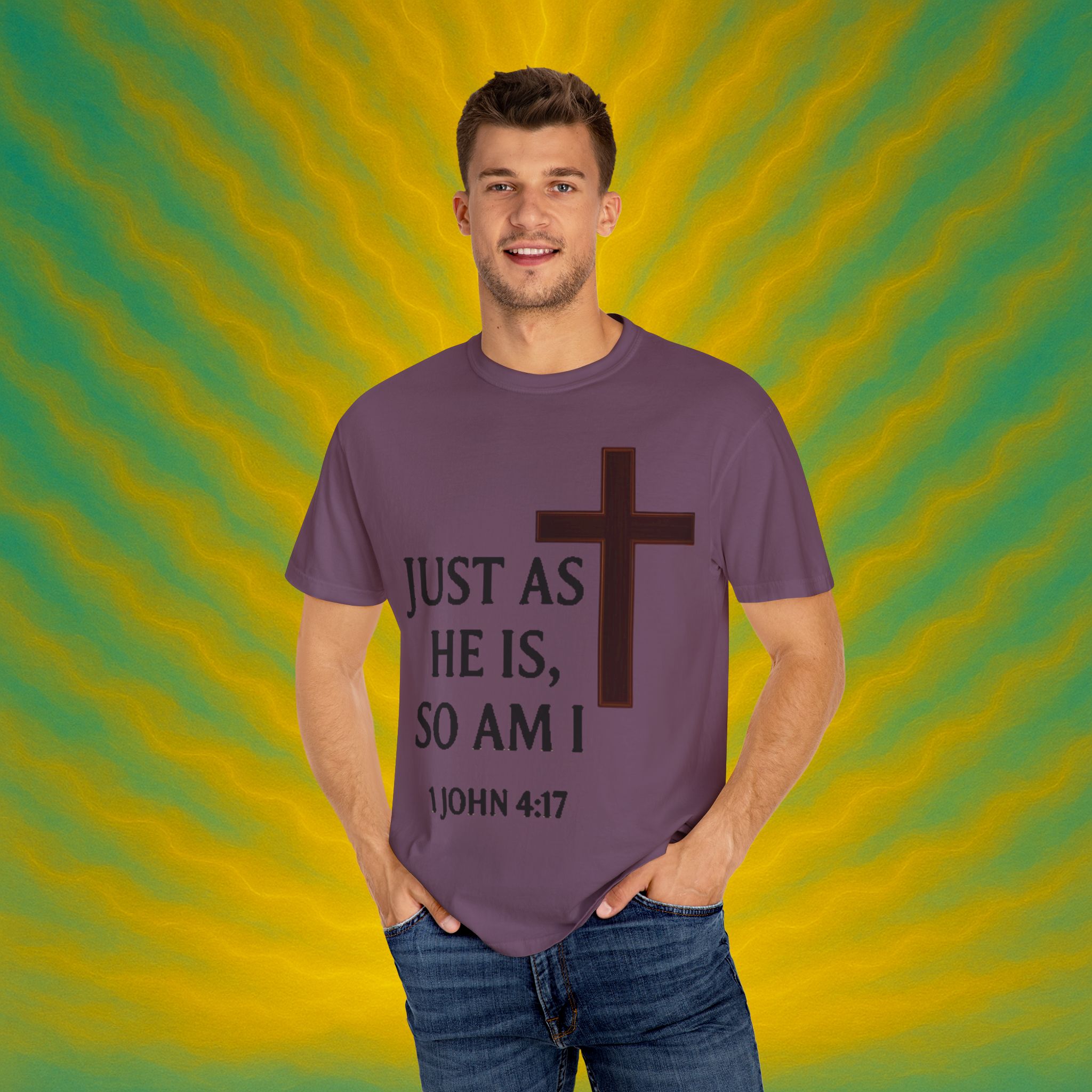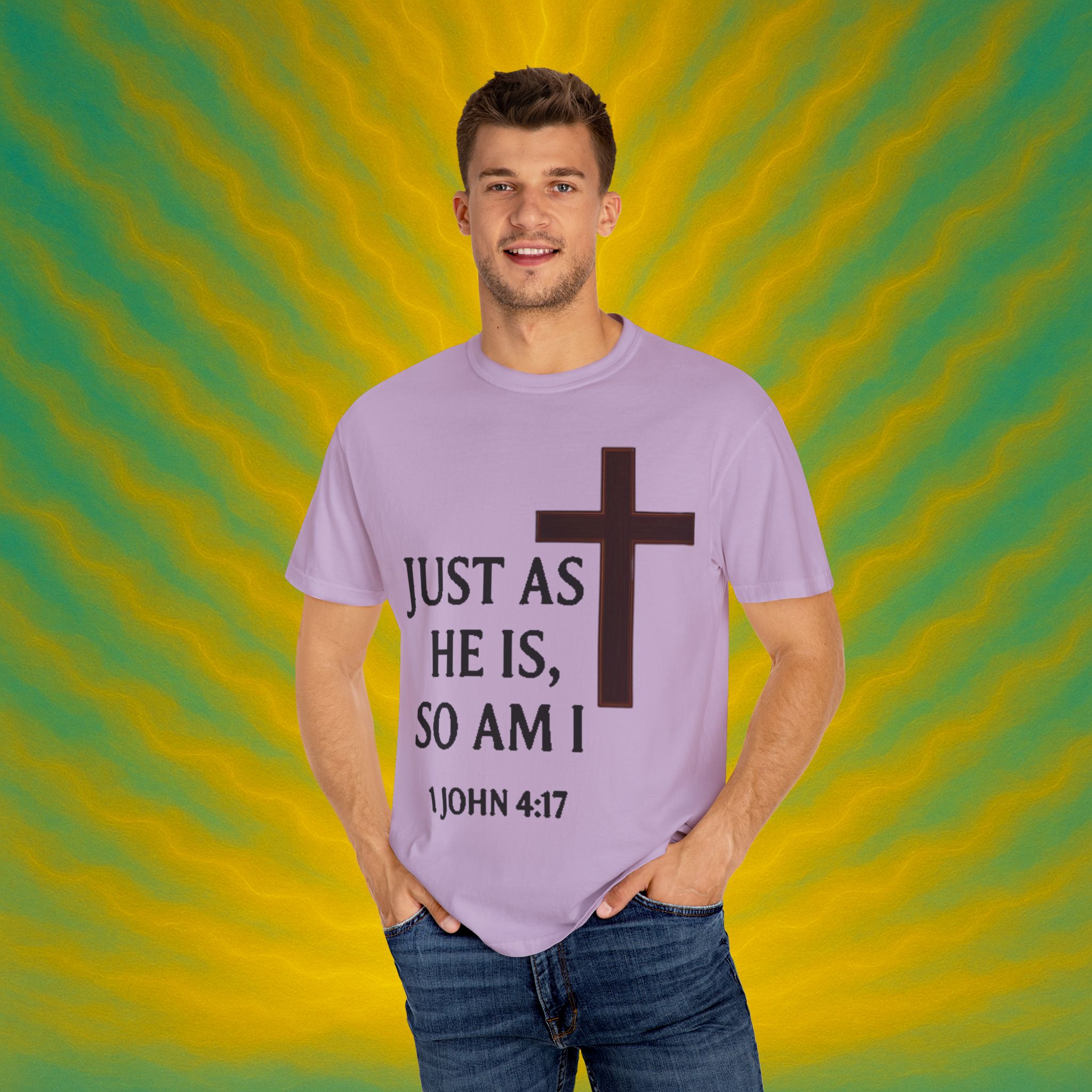 Discover the ultimate comfort of this unisex garment-dyed T-shirt, perfect for expressing your faith and style. With its soft texture and vibrant colors, it brings a sense of warmth and reassurance to your everyday wardrobe. Ideal for those who appreciate both casual and semi-formal looks, this shirt suits a range of occasions—from uplifting Sunday services to relaxed family gatherings. Embrace a striking, meaningful piece that resonates with spiritual significance, making it an excellent gift for friends and loved ones during holidays, celebrations, or simply as an expression of love. Everyone from the faithful to the fashion-conscious will find joy in wearing this versatile tee.Product features