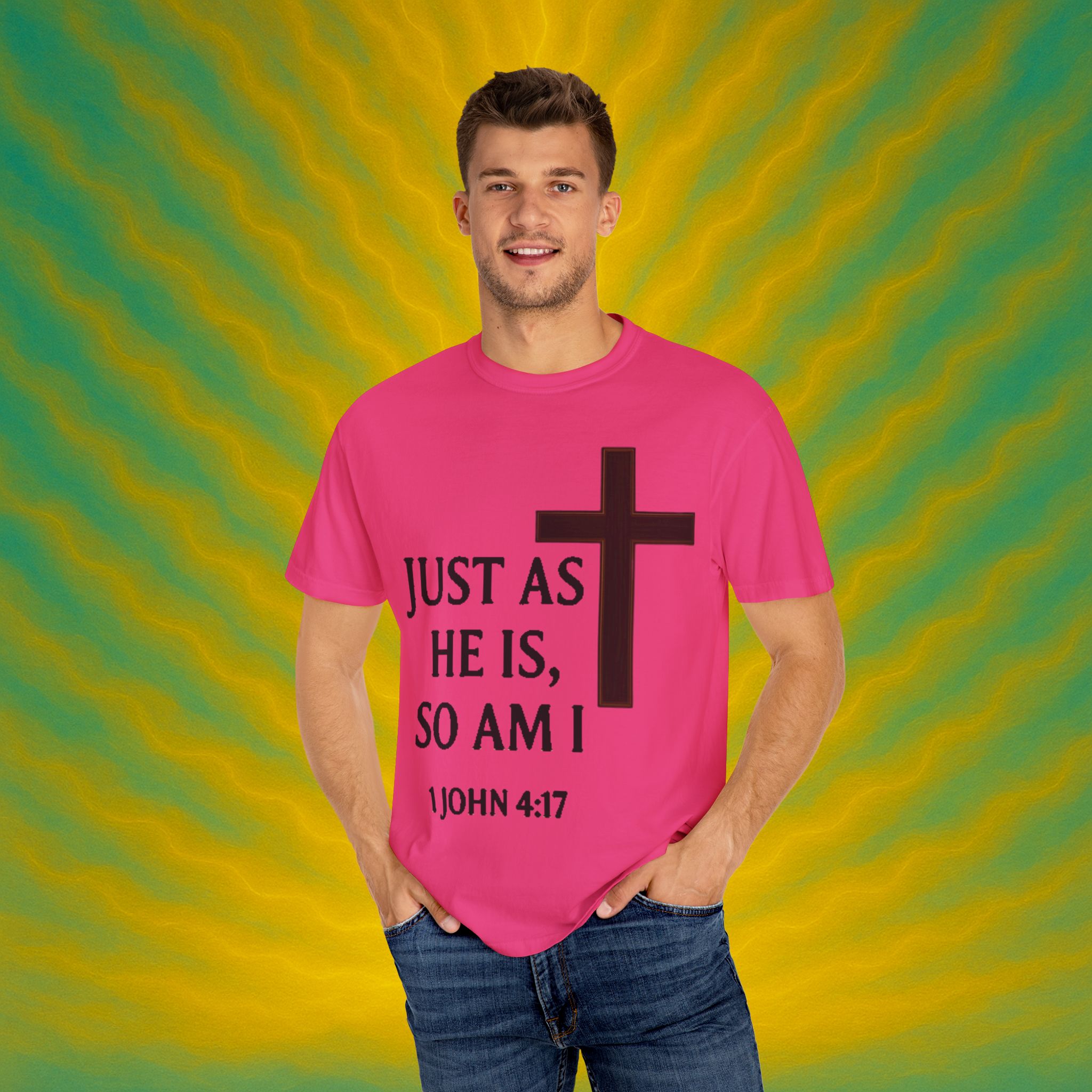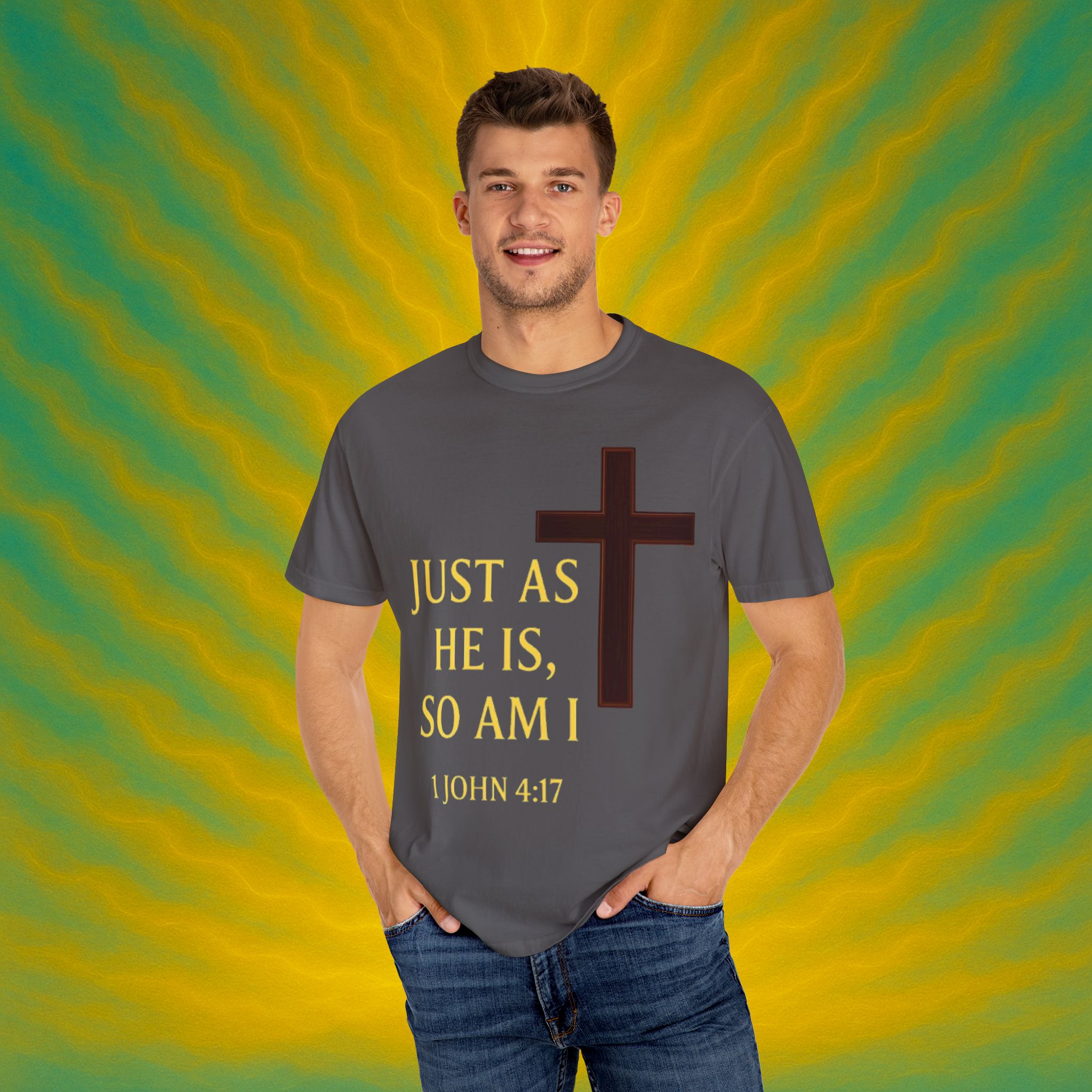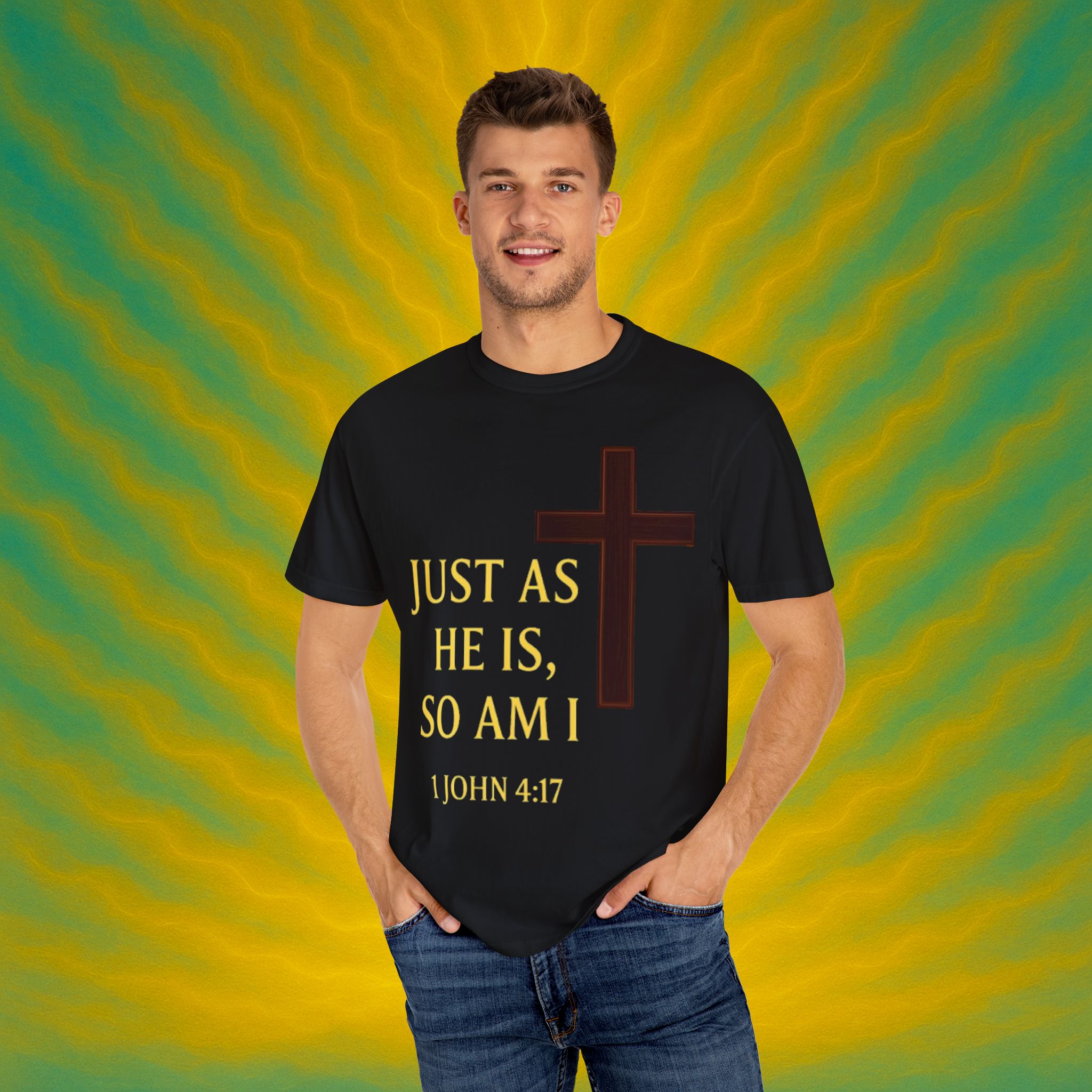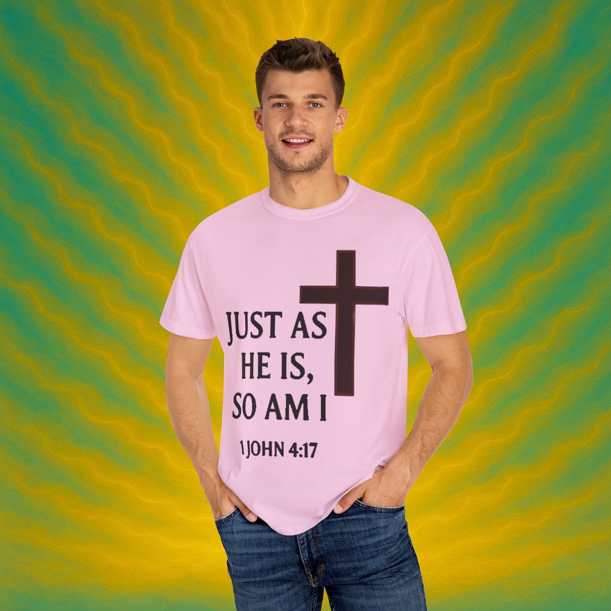 Discover the ultimate comfort of this unisex garment-dyed T-shirt, perfect for expressing your faith and style. With its soft texture and vibrant colors, it brings a sense of warmth and reassurance to your everyday wardrobe. Ideal for those who appreciate both casual and semi-formal looks, this shirt suits a range of occasions—from uplifting Sunday services to relaxed family gatherings. Embrace a striking, meaningful piece that resonates with spiritual significance, making it an excellent gift for friends and loved ones during holidays, celebrations, or simply as an expression of love. Everyone from the faithful to the fashion-conscious will find joy in wearing this versatile tee.Product features