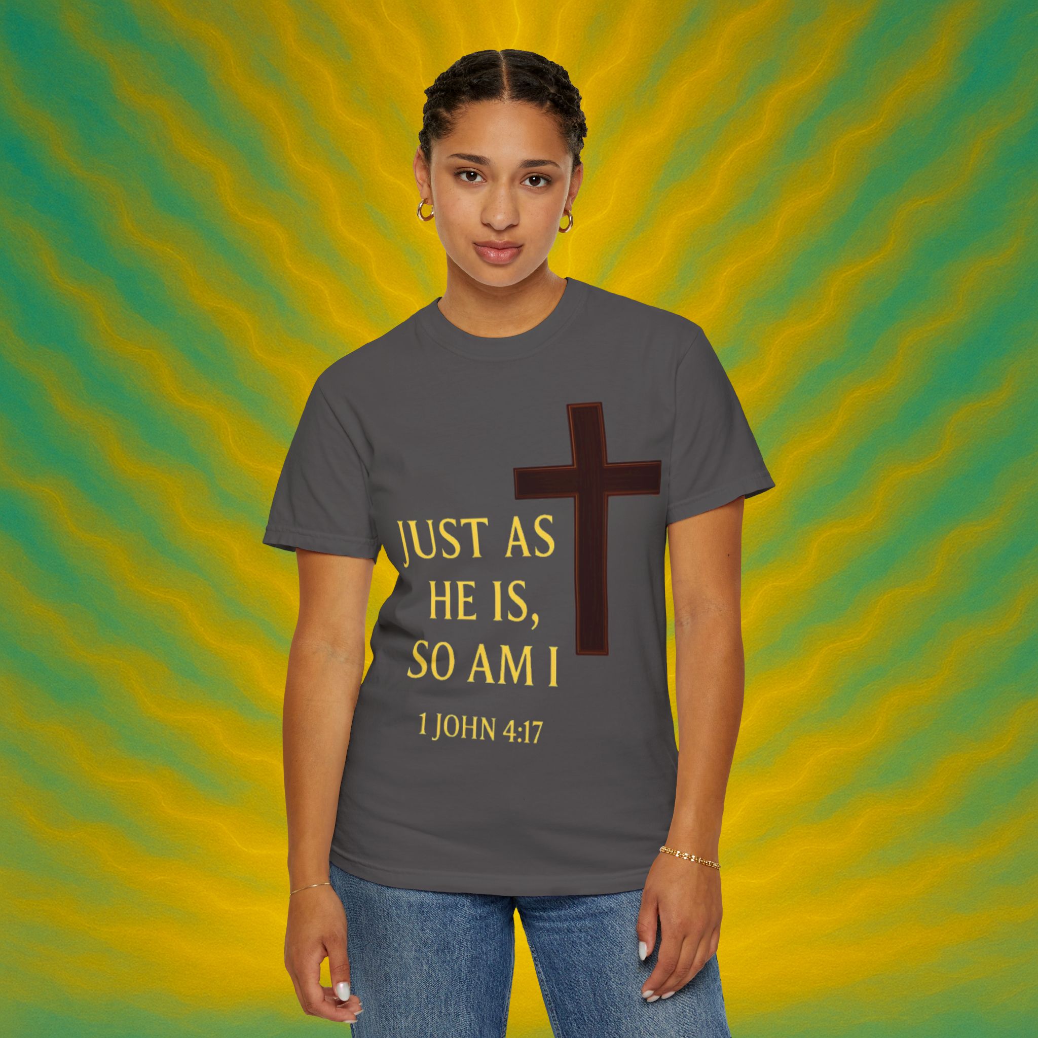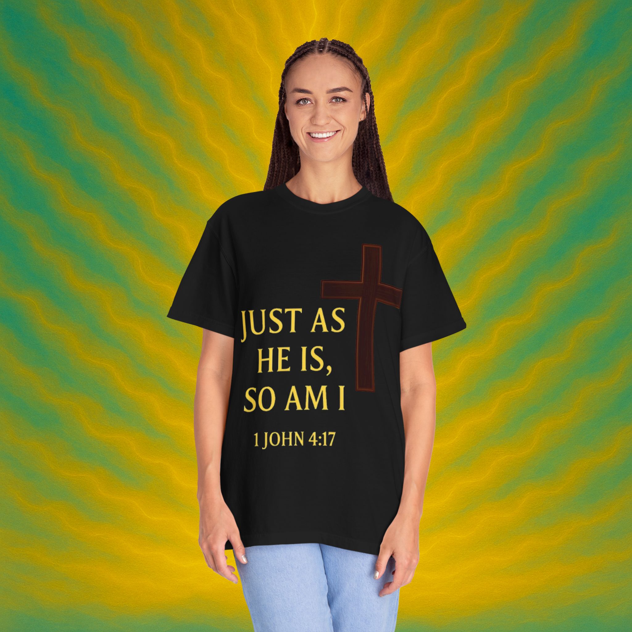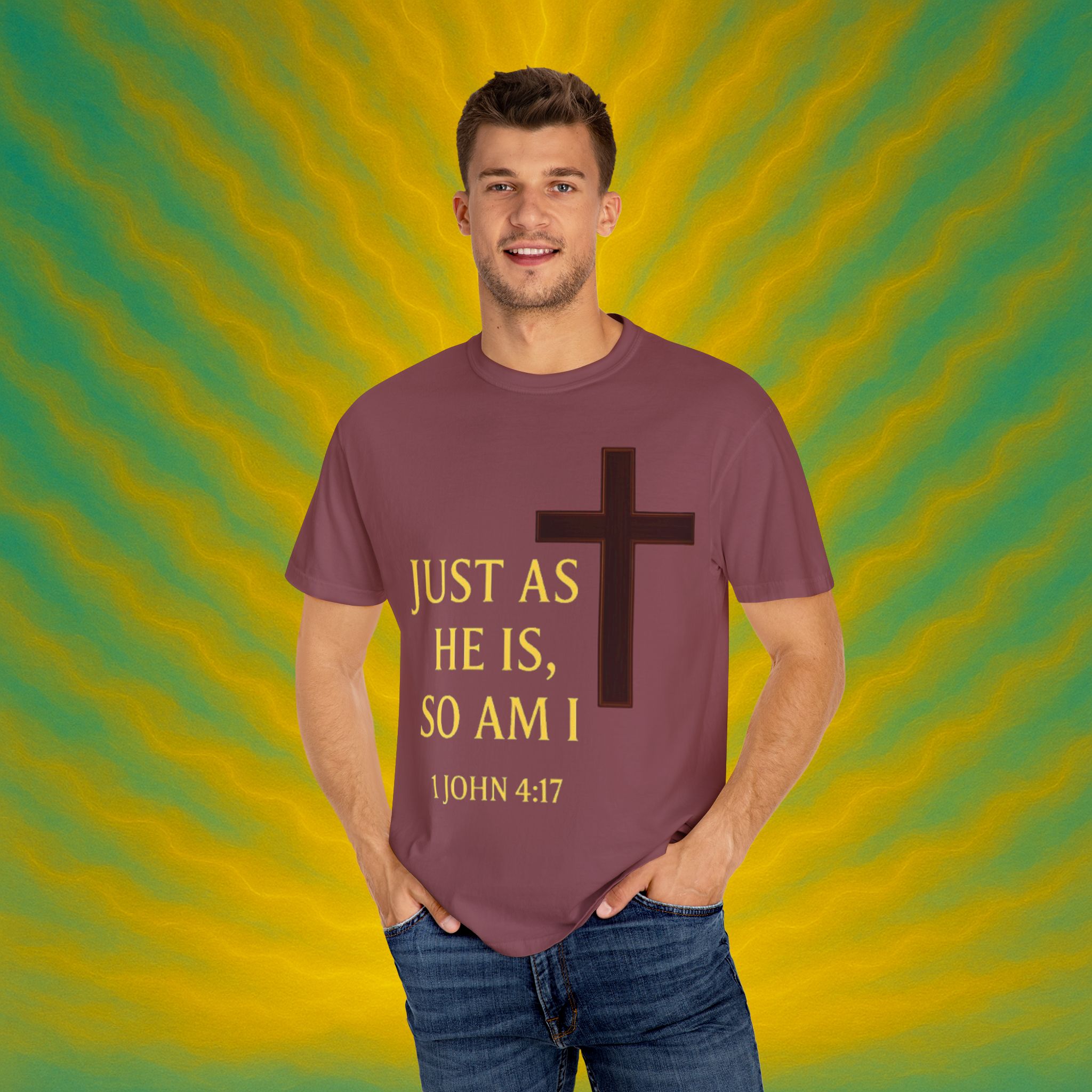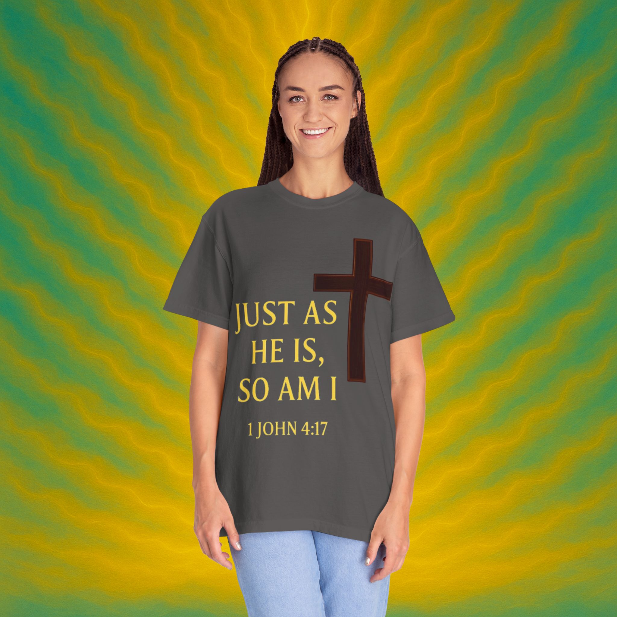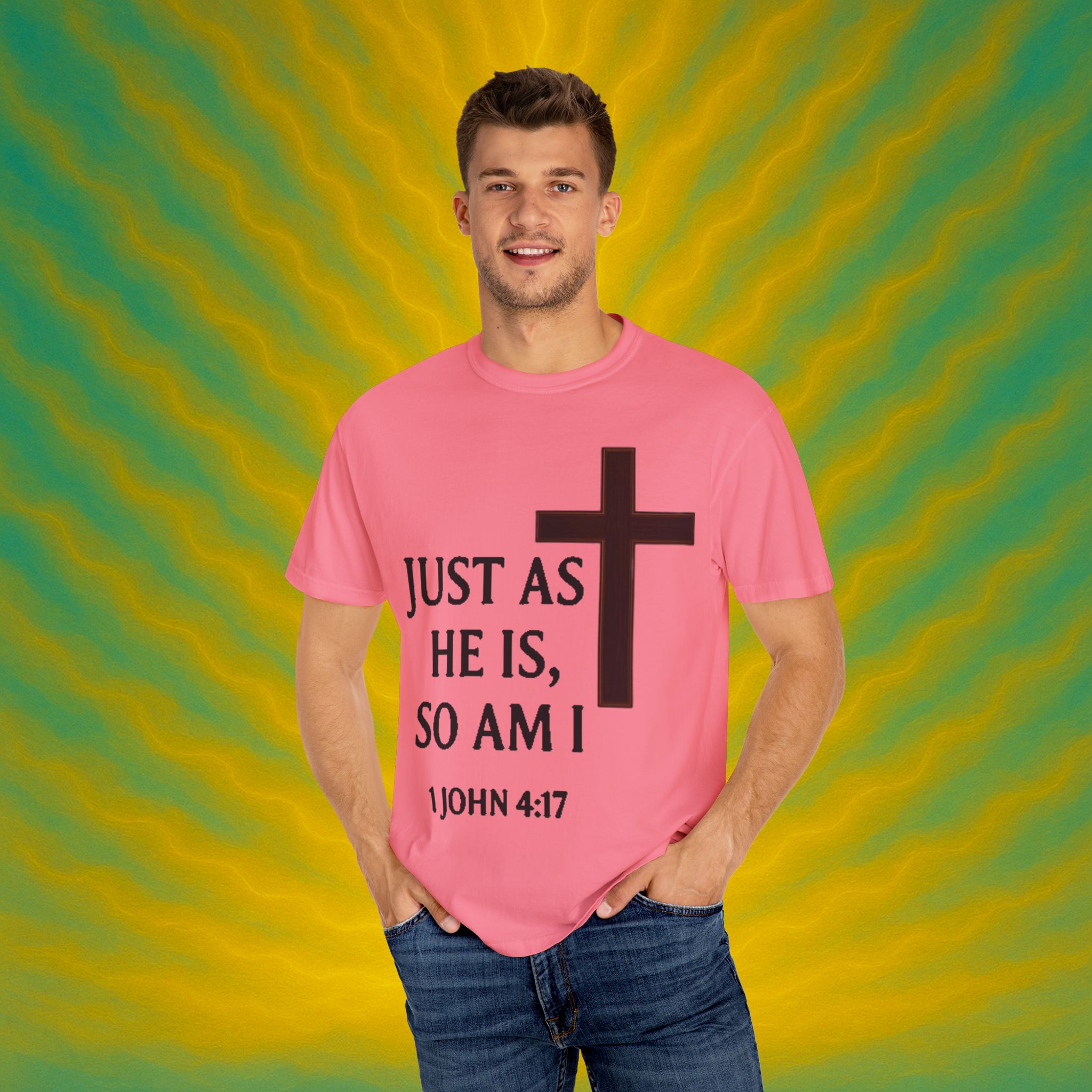 Discover the ultimate comfort of this unisex garment-dyed T-shirt, perfect for expressing your faith and style. With its soft texture and vibrant colors, it brings a sense of warmth and reassurance to your everyday wardrobe. Ideal for those who appreciate both casual and semi-formal looks, this shirt suits a range of occasions—from uplifting Sunday services to relaxed family gatherings. Embrace a striking, meaningful piece that resonates with spiritual significance, making it an excellent gift for friends and loved ones during holidays, celebrations, or simply as an expression of love. Everyone from the faithful to the fashion-conscious will find joy in wearing this versatile tee.Product features