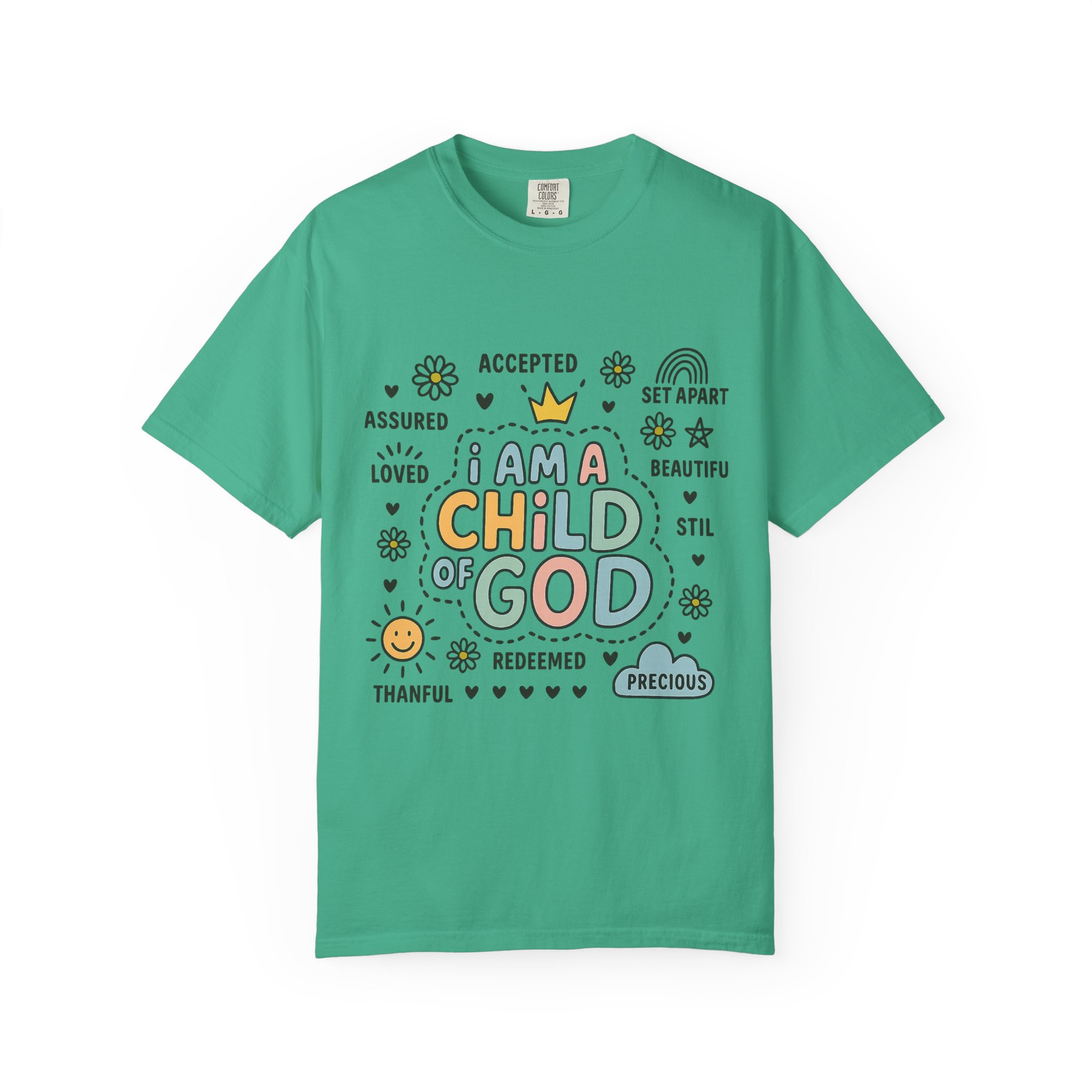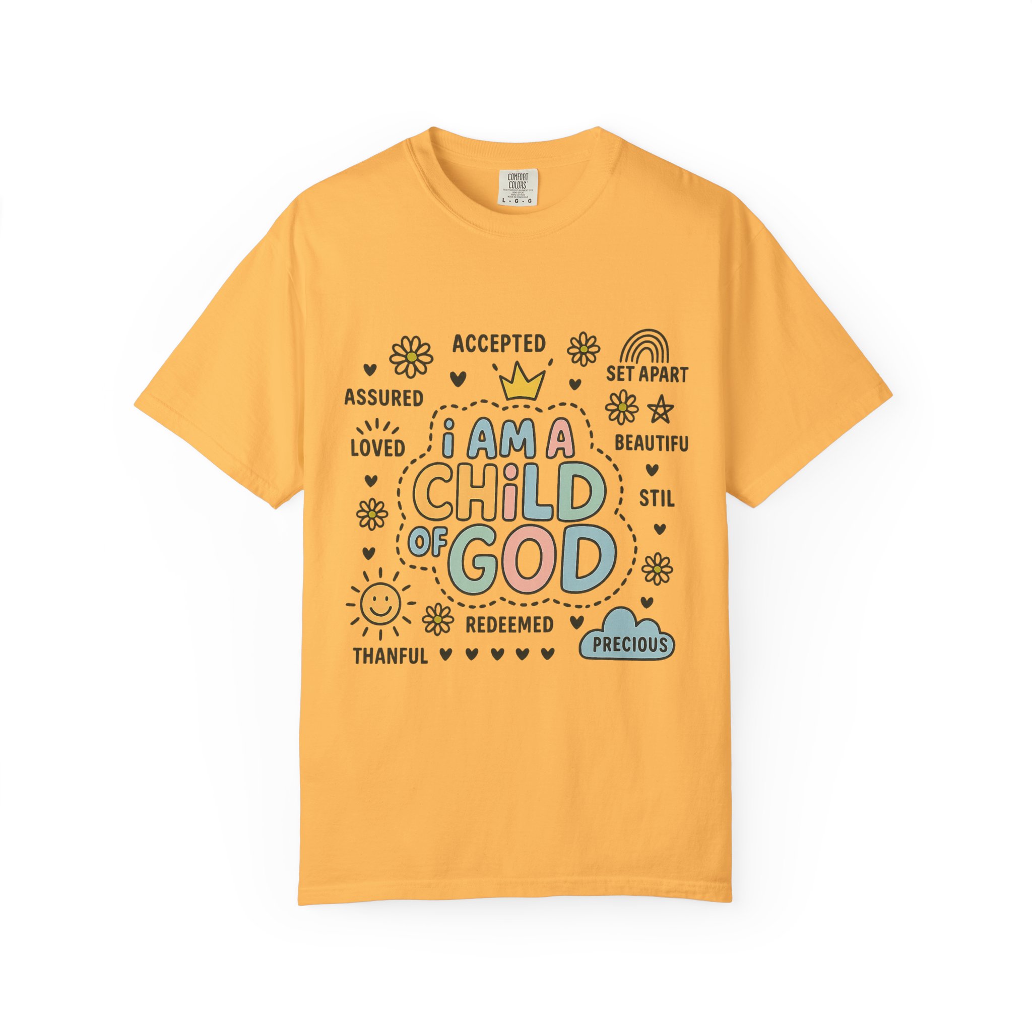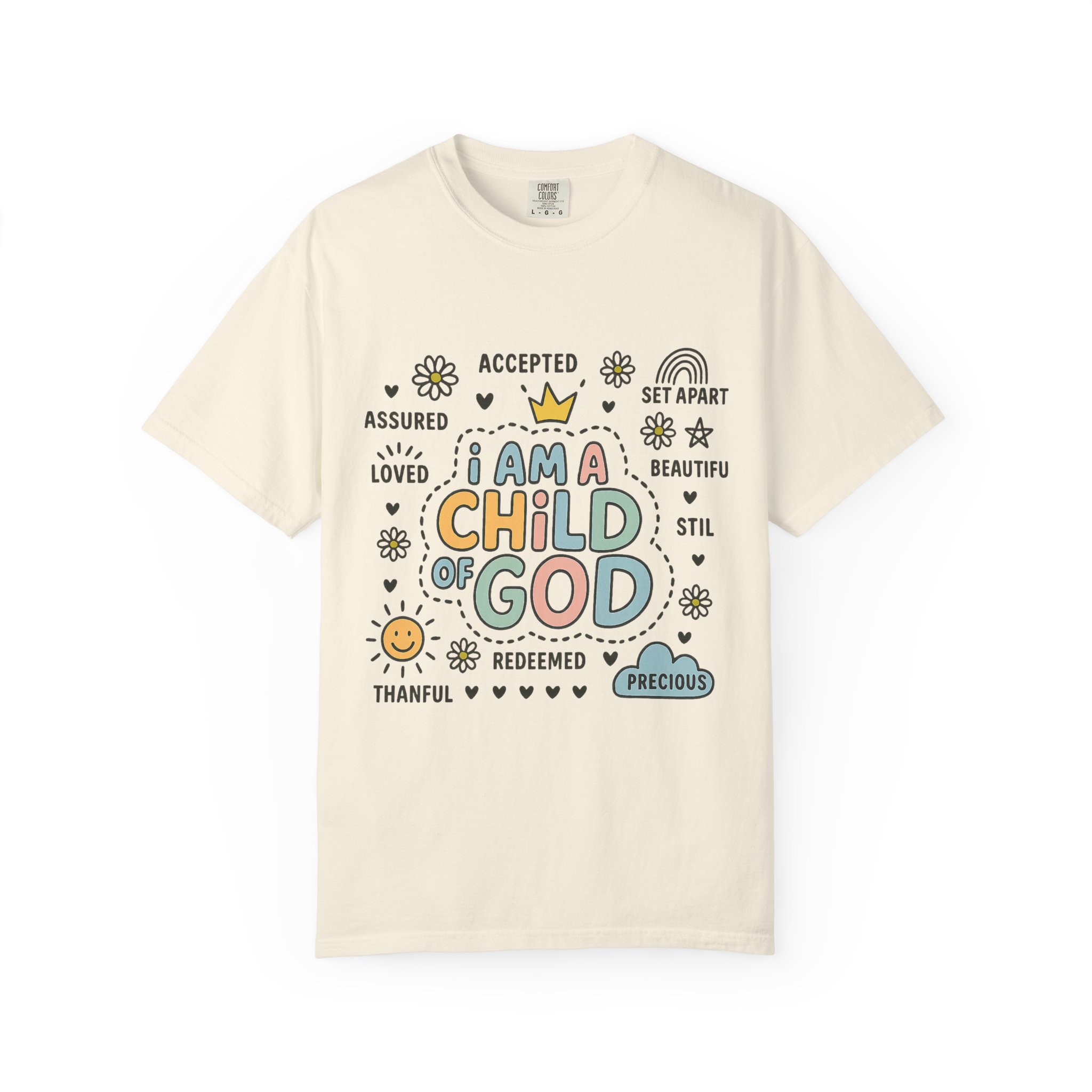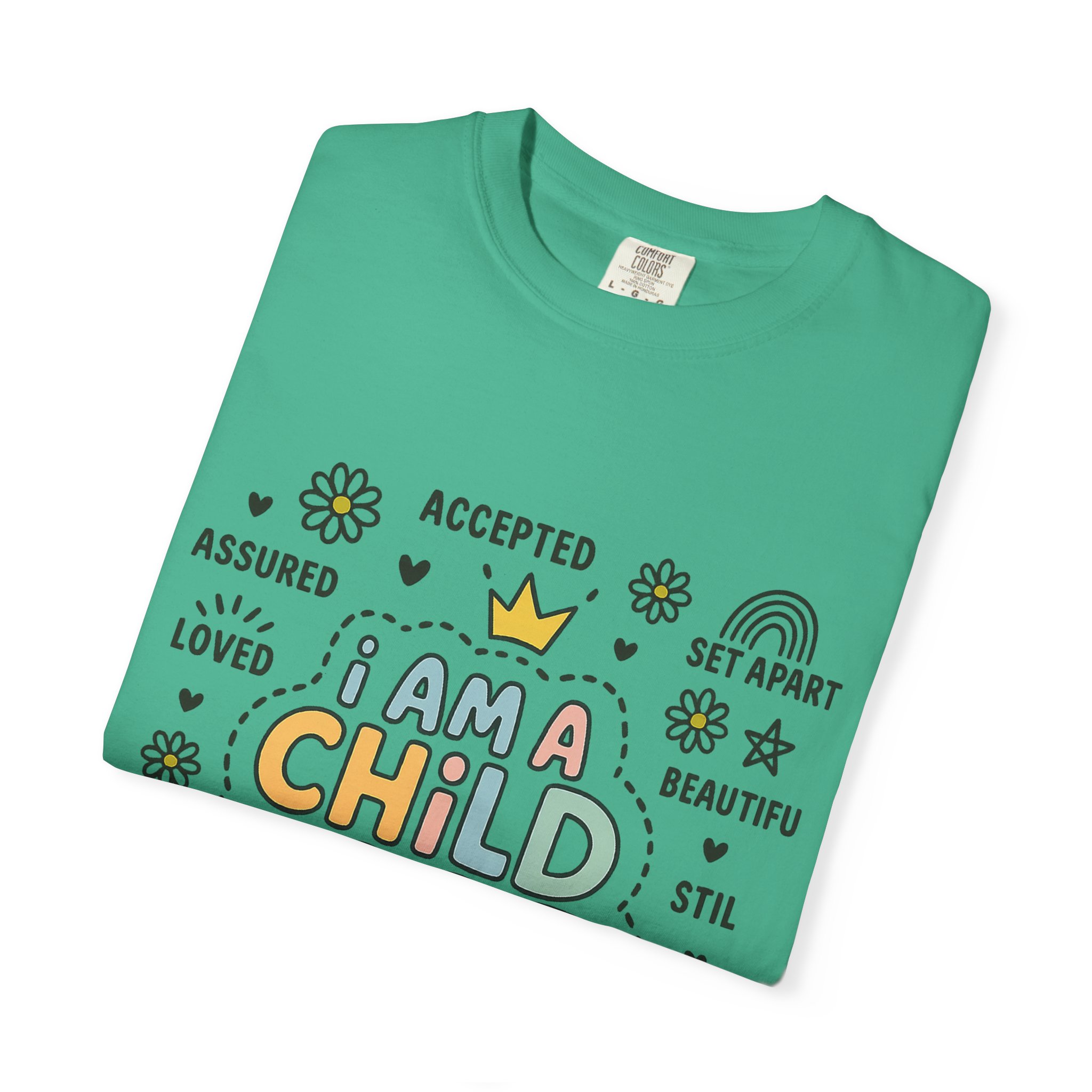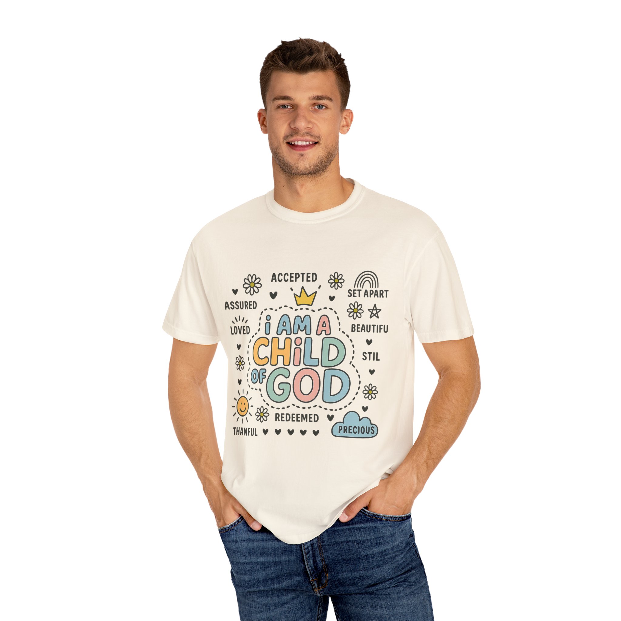 This Unisex Garment-Dyed T-shirt radiates positivity and warmth with its uplifting message, making it a perfect addition to any wardrobe. Crafted from 100% ring-spun US cotton, it offers exceptional comfort and a soft feel against the skin. The relaxed fit and classic crew neckline allow for versatility, whether dressing casually or layering for a semi-formal look. Ideal for individuals who embrace faith and seek to express their beliefs through fashion, this tee is a thoughtful gift for friends and loved ones during special occasions such as Christmas, Easter, or personal milestones. With a variety of 58 vibrant colors to choose from, you can express your individual style while sharing an important message.Style this T-shirt with jeans for a day out, or pair it with a light jacket for a chill evening. It’s not just a shirt; it’s a statement that fits seamlessly into a lifestyle centered around love, acceptance, and faith.